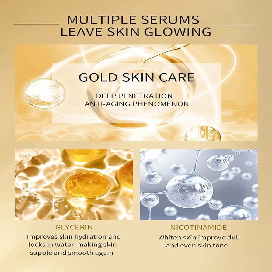 This advanced formula combines the potent anti-aging properties of pure 24k gold with a synergistic blend of scientifically proven ingredients from natural sources.